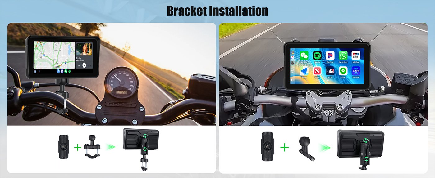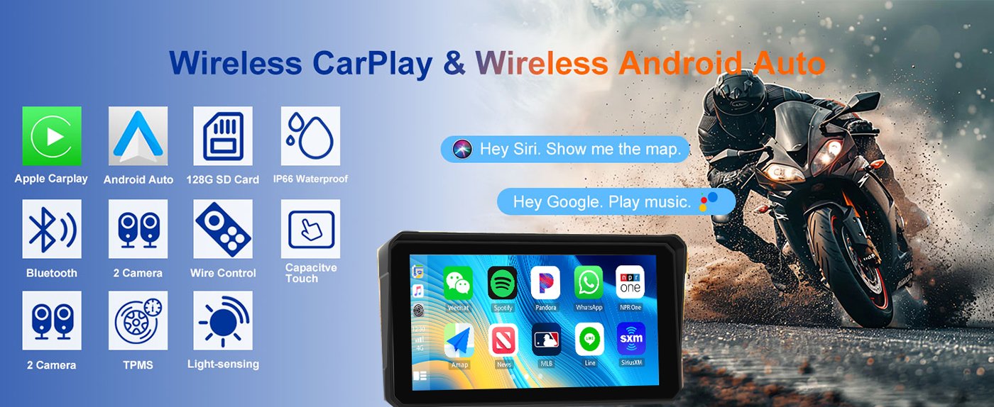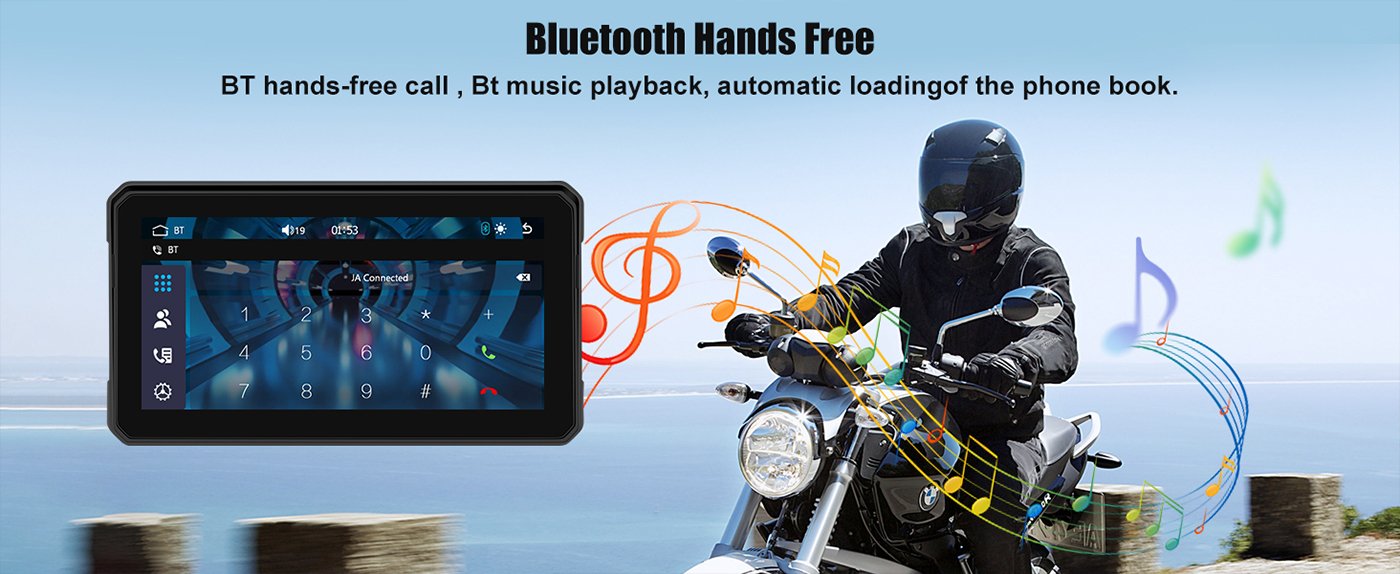 Wirelessly connect your smartphone to the 6″ Motorcycle CarPlay Screen and access maps, calls, music, and more