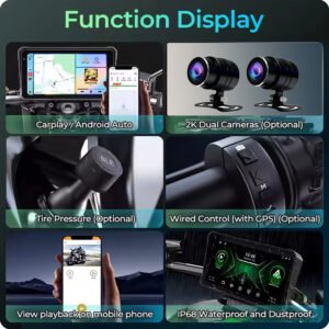 Our motorcycle android auto captures clear footage with front and rear 2K cameras for full coverage, acting as a reliable motorcycle video recorder. Dual-channel recording and included 64GB SD card offer ample storage. Auto light sensing adjusts brightness for visibility, perfect for motorcycle carplay with camera setups.