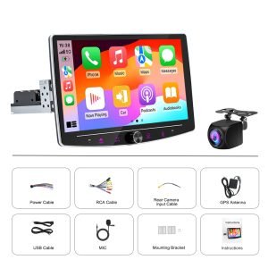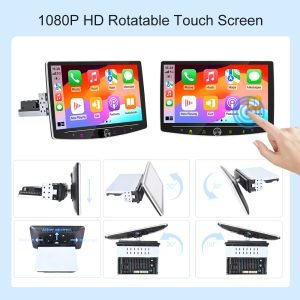 【10.1″ Android Vertical Rotatable Car Stereo】This single din car stereo with high-definition 10.1 inch 2.5D tempered glass mirror touch screen,and which can be rotated by 180°.You can adjust the screen manually to make it display vertically or horizontally. Give you the most comfortable visual and touch experience.This car radio installation size is: 178(L)* 50(W)*145(D)mm.Please confirm whether the size is appropriate before buying.