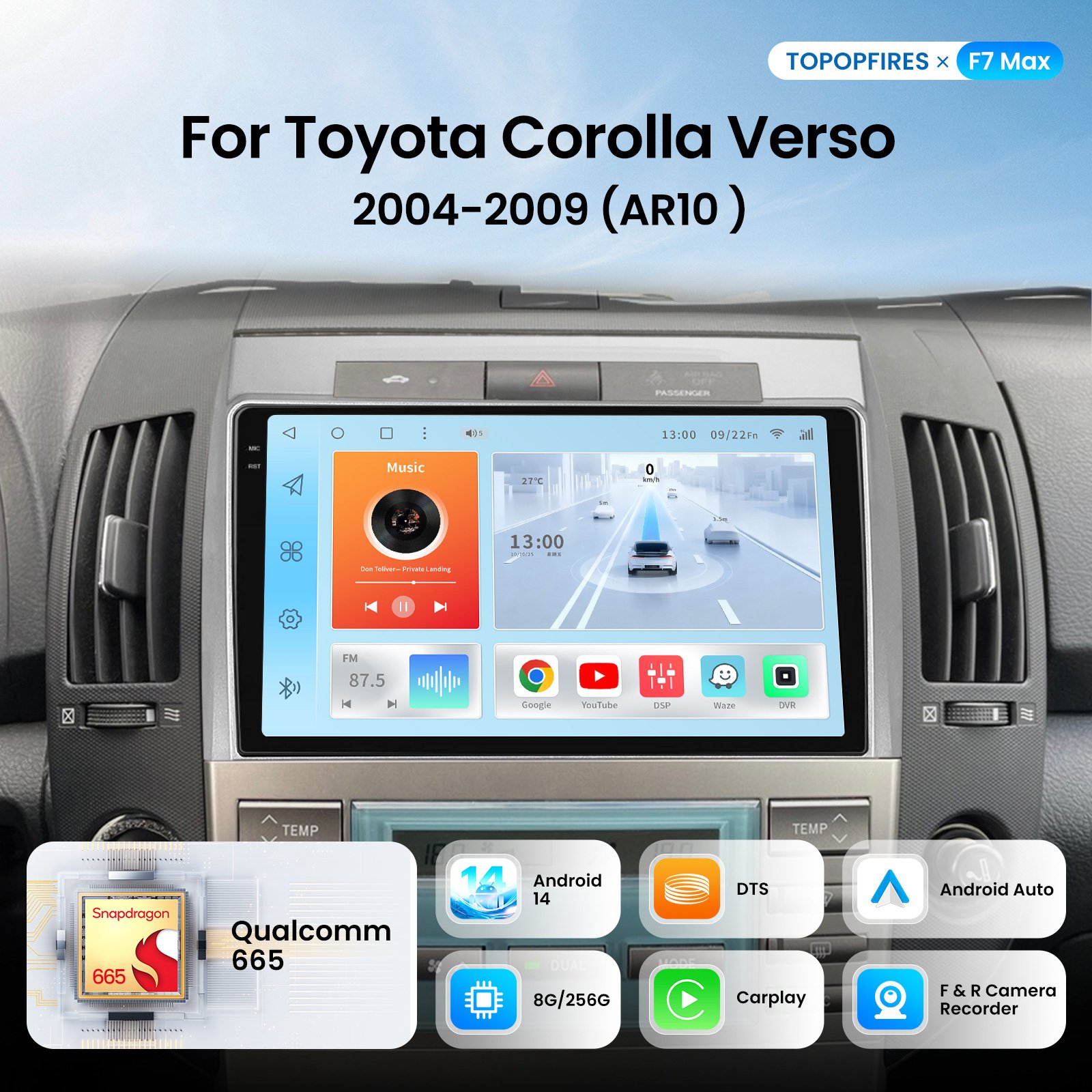 TOPOPFIRES Car Stereo for Toyota Corolla Verso 2004-2009 (AR10 ) | Wireless CarPlay/Android Auto| 8GB+128GB | Dash Camera Support