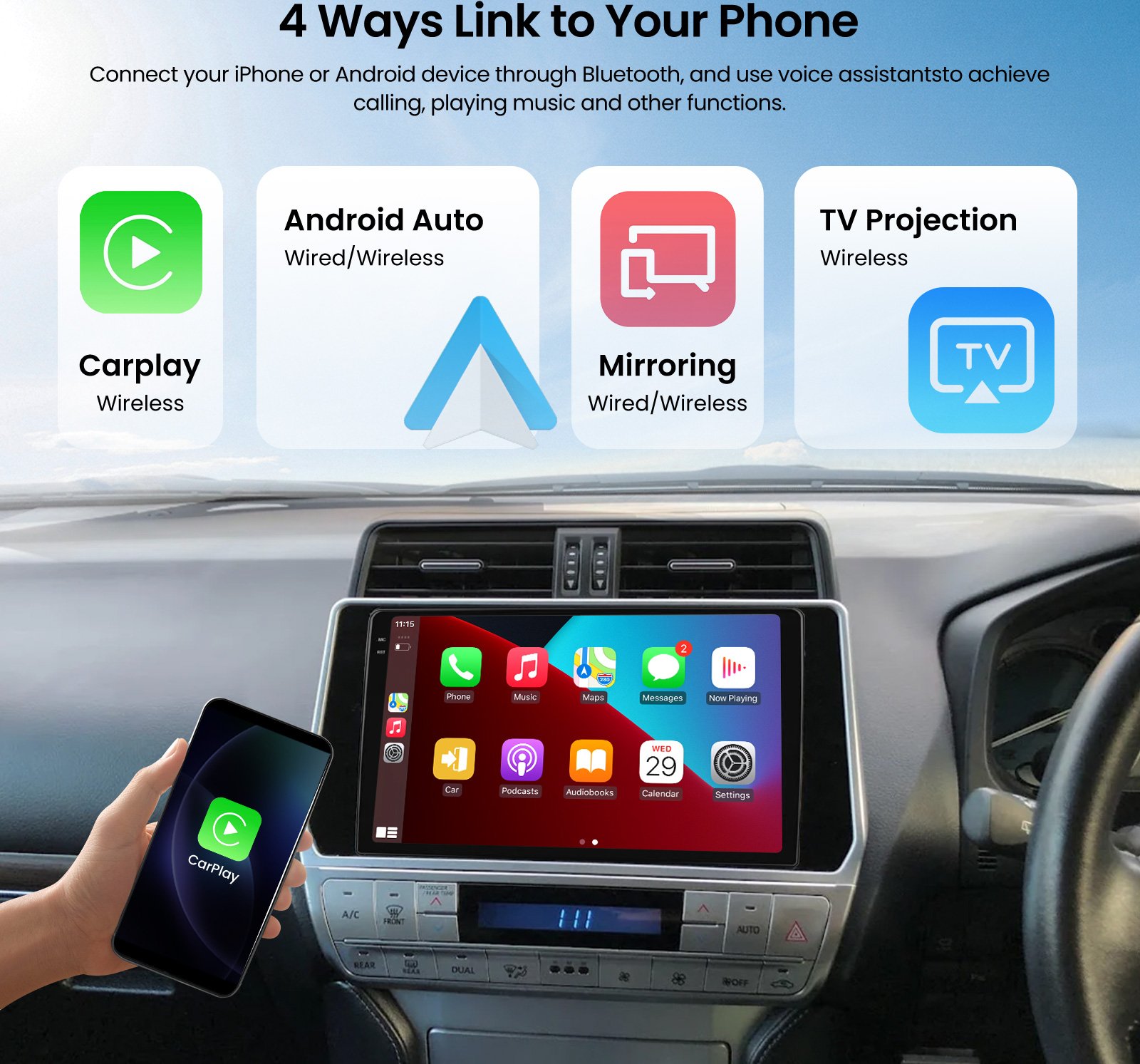 Uncompromised Performance: Whether you choose wireless or wired, you benefit from a native, familiar interface on your large screen, giving you safe, easy access to your favorite apps, maps (like Google Maps/Waze), and multimedia content.